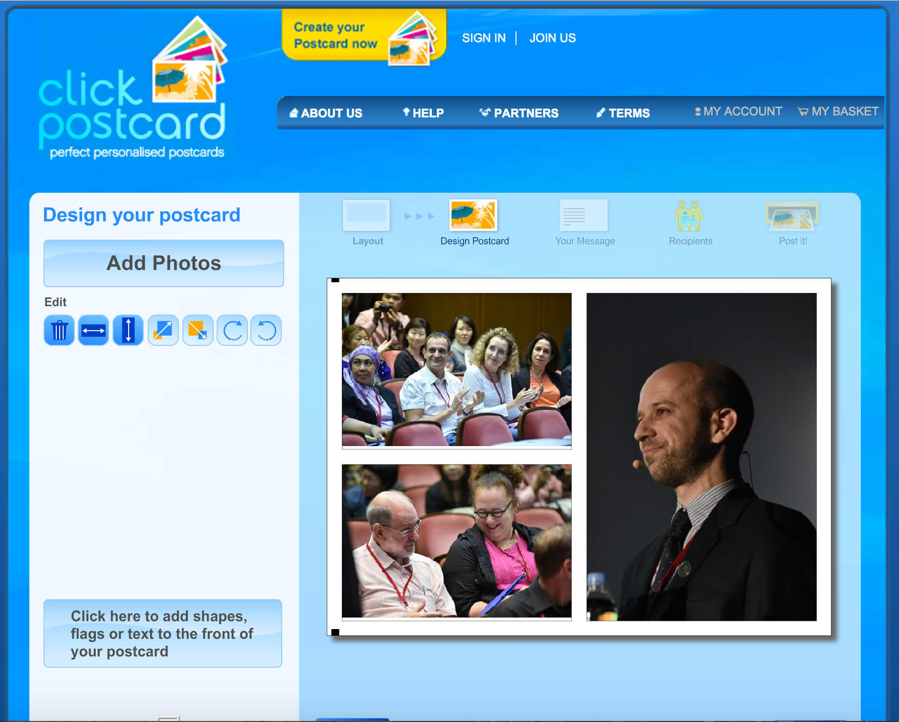 Create, share and send perfect, personalised postcards!